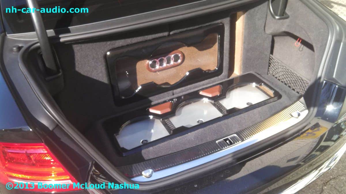 This very elegant Audi S8 Custom installation includes both one of our ‘stealth’ radar installations, and has a Custom Trunk Mount Sub-woofer Installation. It is important that not only should a Boomer Sound Installation Sound Great, but it must also Look Great. Looking great means it should have a WOW factor, and still look like it is one with the rest of the car.