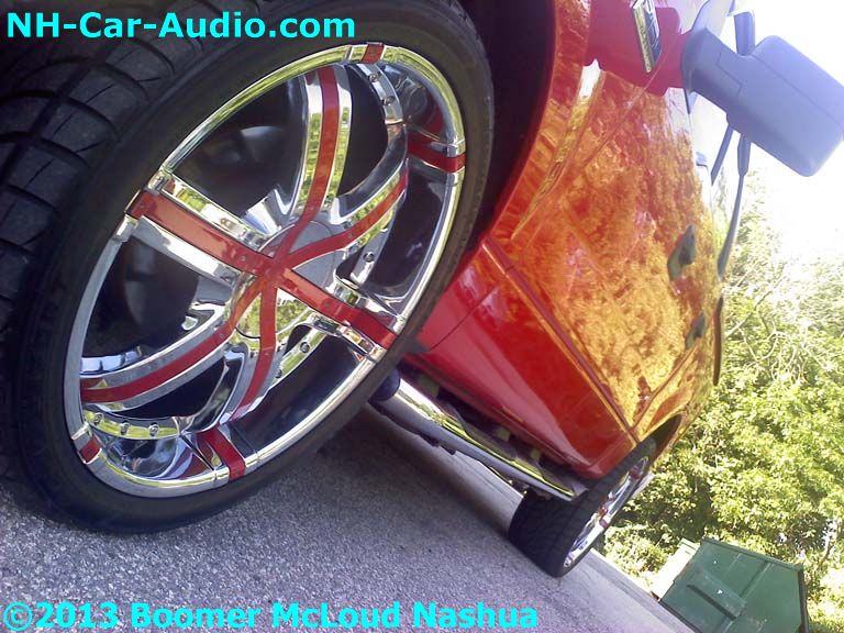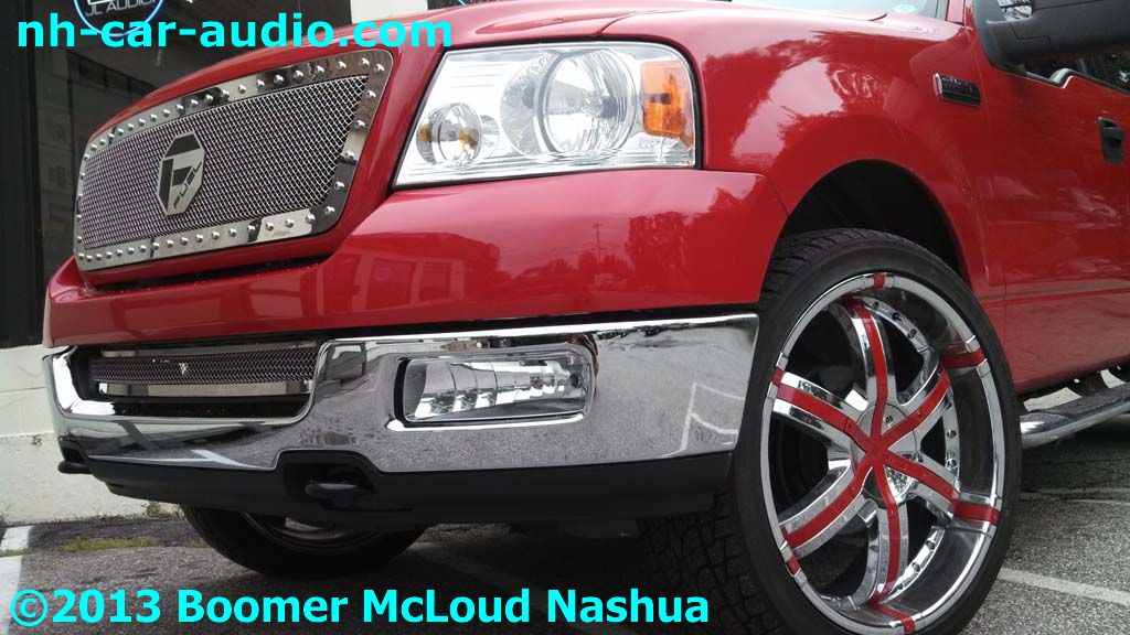 Ford F150 Custom TruckHere is a Ford F150 custom truck install that got the works.  We installed Custom door speakers, Console Subs, Navigation system, and rear head rest video monitors.  You can see how neatly the amp is tucked away behind the rear seat.  This truck also got custom wheels made to match the truck’s Red paint.  You definitely need a good radar system for this one.  One of the nicer Ford F150 Custom Trucks on the road.gallery-spacer