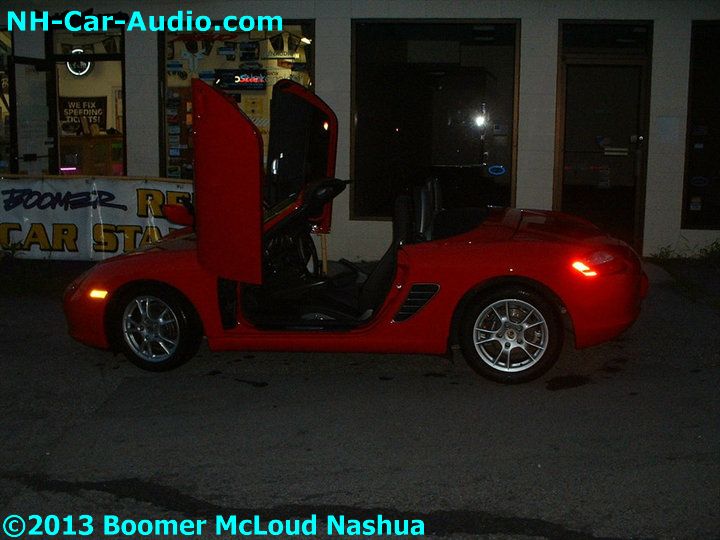 We have done custom installs on many Porsche’s since we have been in business. We liked this one so managed to sneak a bunch of shots of it when no one was looking. This is a Porsche Boxster custom done the way we do them with a lamborghini door conversion. We can customize your ride, look over our example library here and pick out your favorites. Then come on in and lets talk about making it happen soon.