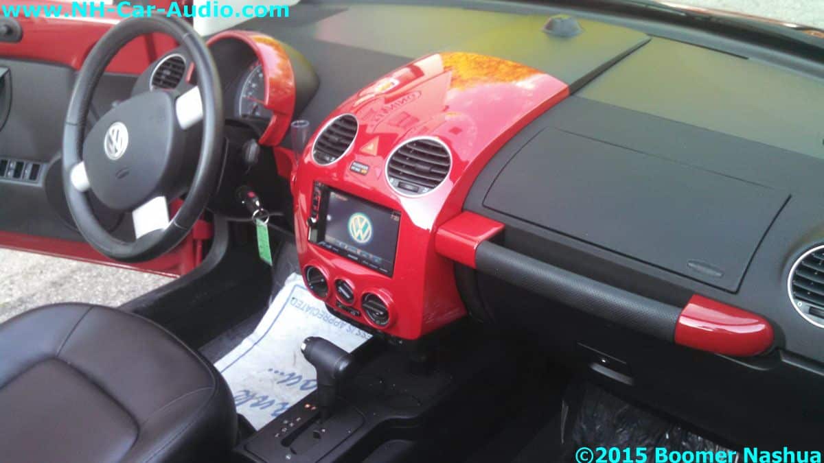 This VW Bug Custom dash project shows how our Boomer Nashua Installers are able to install new tech when there is no place to put it. Simply put, they make a place, in this case a new dash panel mold was built and this fabulous dash update created.  It allows us to optimize the space and really put everything where it should be. In this instance, it was a Kenwood double din multimedia upgrade for this VW Bug custom dash solution.gallery-spacer