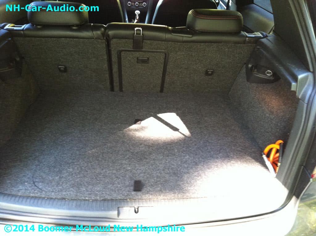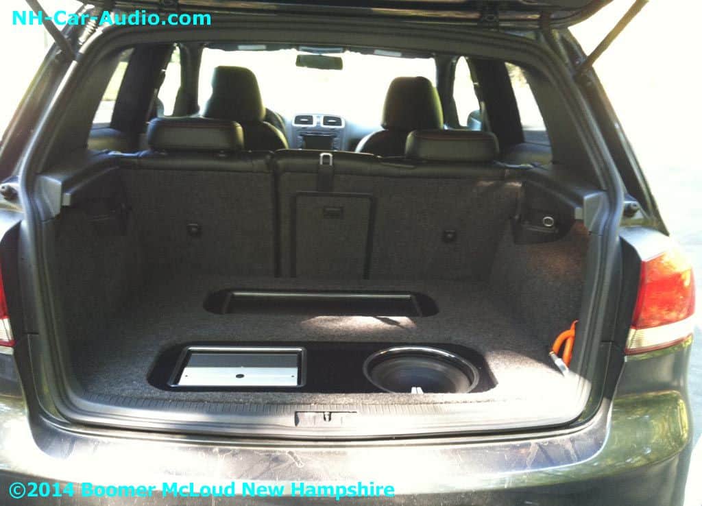 We added new wheels and airbags to this VW GTI Custom installation. We didn’t want to stop there, and added custom interior, a nice display floor for the rear subs and air ride pressure tank. Nothing looks as good as custom seats with matching door panels. The JL Audio amp and sub look so happy in their new home don’t you think?