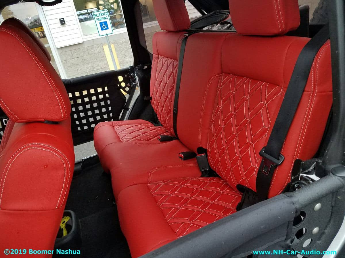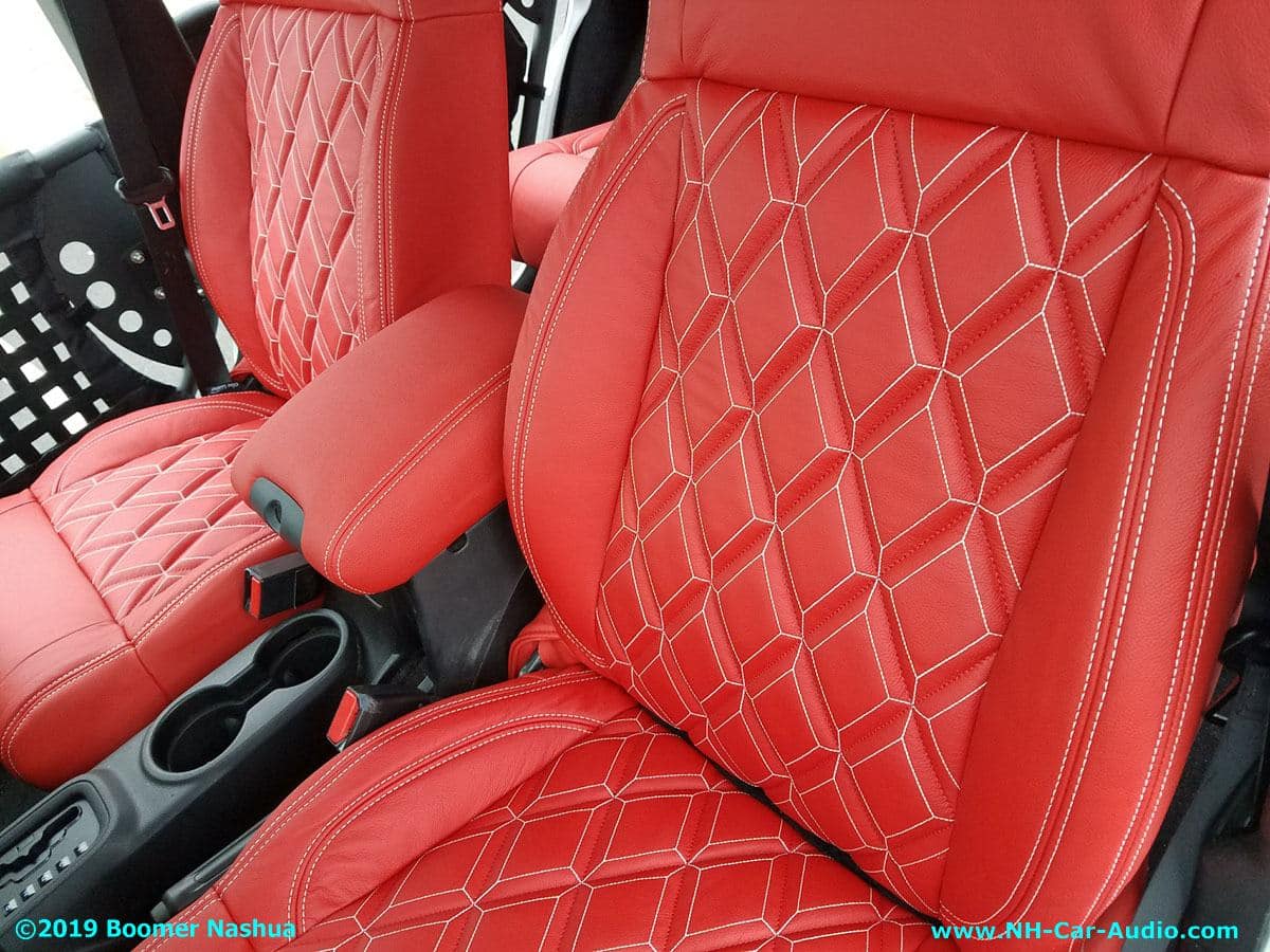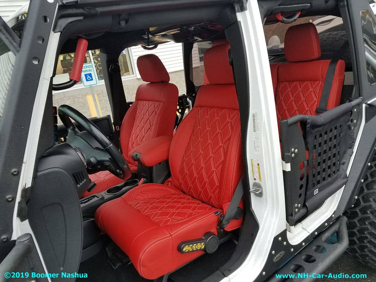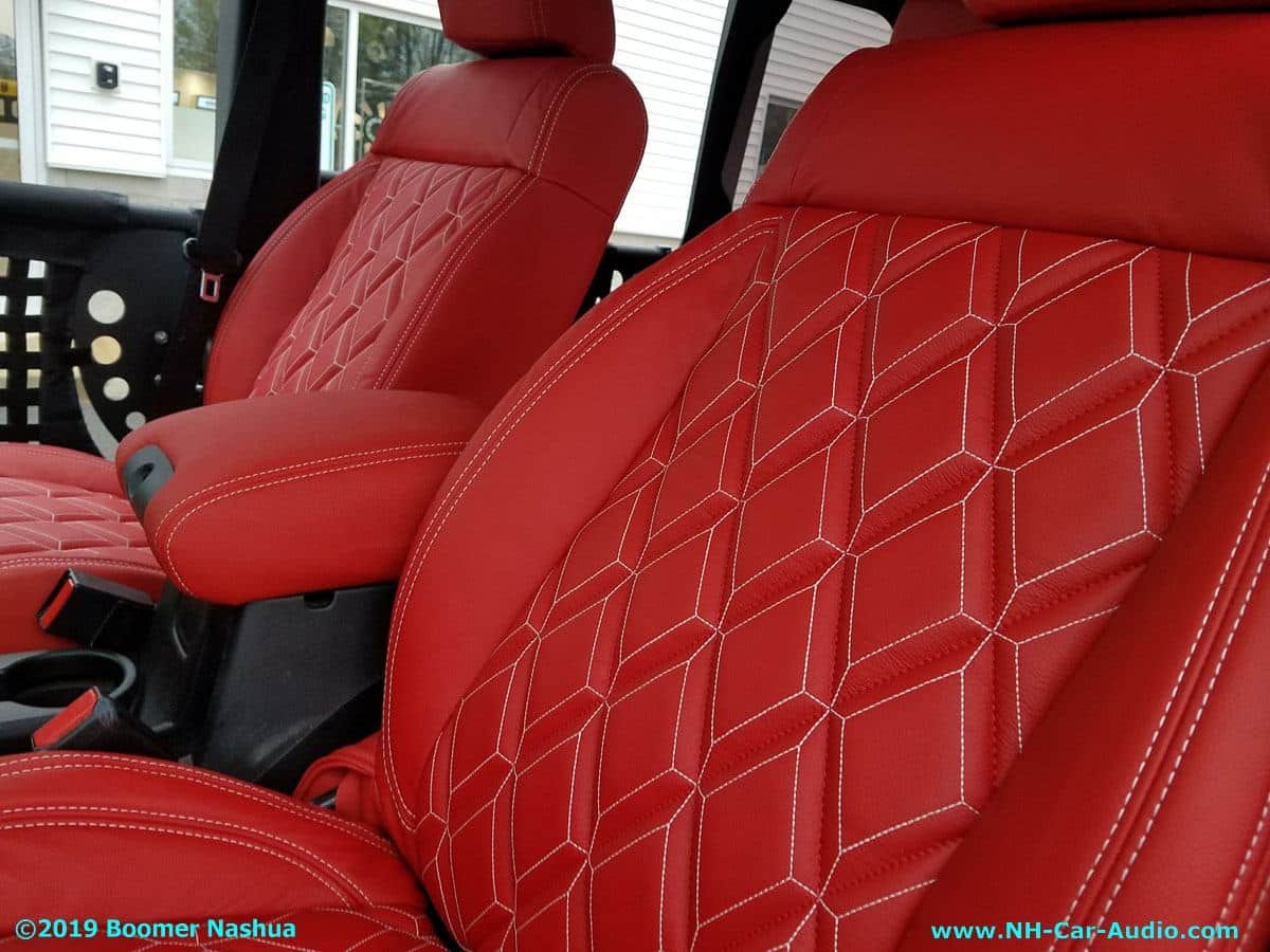 Need new Seats, this 2011 Jeep Wrangler Unlimited now has a full set of fantastic looking Red ones. Even if your seats are in okay condition, custom upholstered seat covers can bring excitement to an older vehicle. There are even heated seat options that you can easily include. This upgrade brought a very dramatic new look that just pops when you open the doors. The professional installers at Boomer Nashua are ready when you are to make it happen for you.![]()