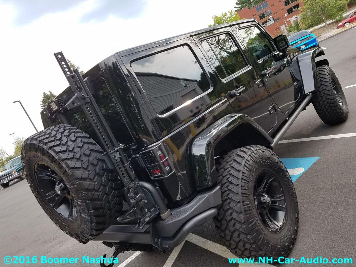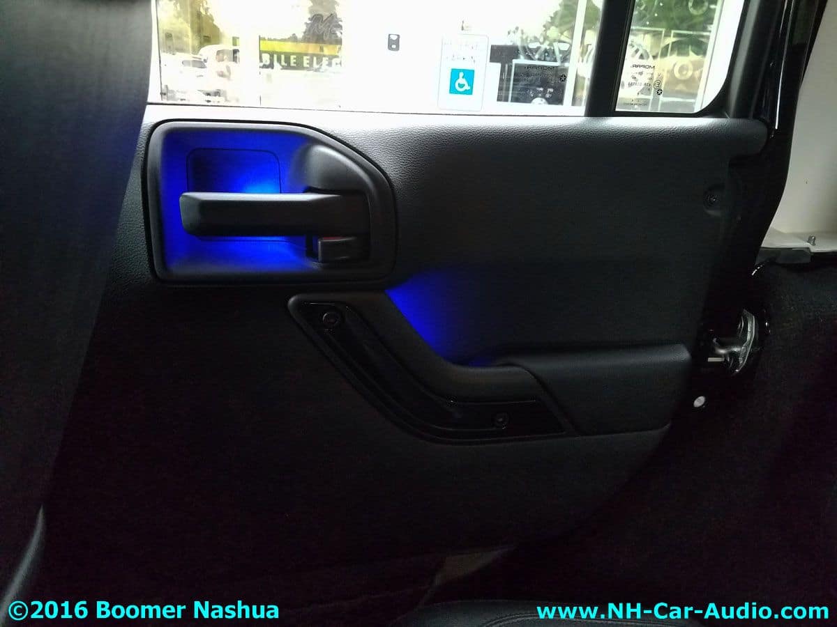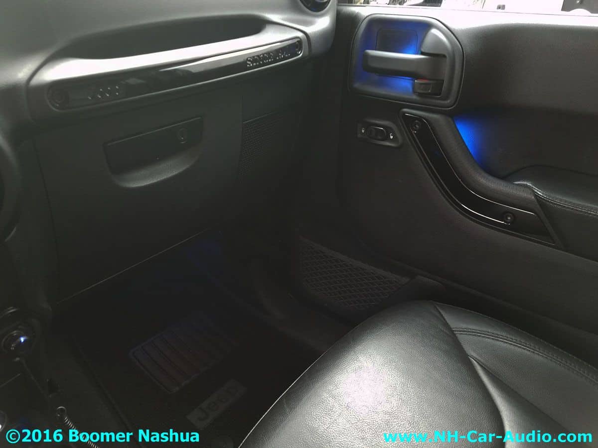 What makes a Jeep Wrangler Unlimited special, letting Boomer Nashua make it a Blacked Jeep Wrangler. Then installing an Alpine 9 inch multimedia display. Where there was darkness, there is now light with the new high intensity LED light bar for off-road use. We weren’t done yet, there is now interior color changing LED lighting behind the door panels and on the floor for great effect. We can help you with your vehicle make-over just like we did with this blacked jeep wrangler. Look through our galleries for ideas, then stop by and have some conversation with one of our professionals today.![]()