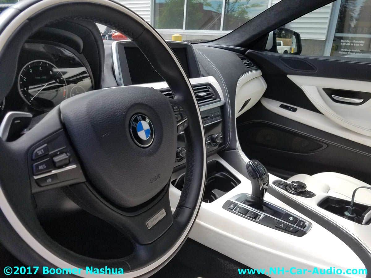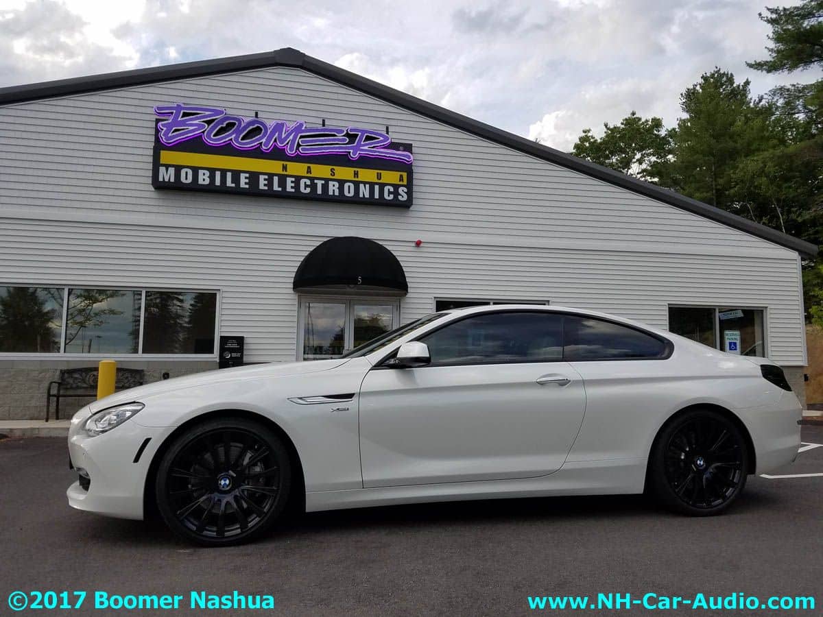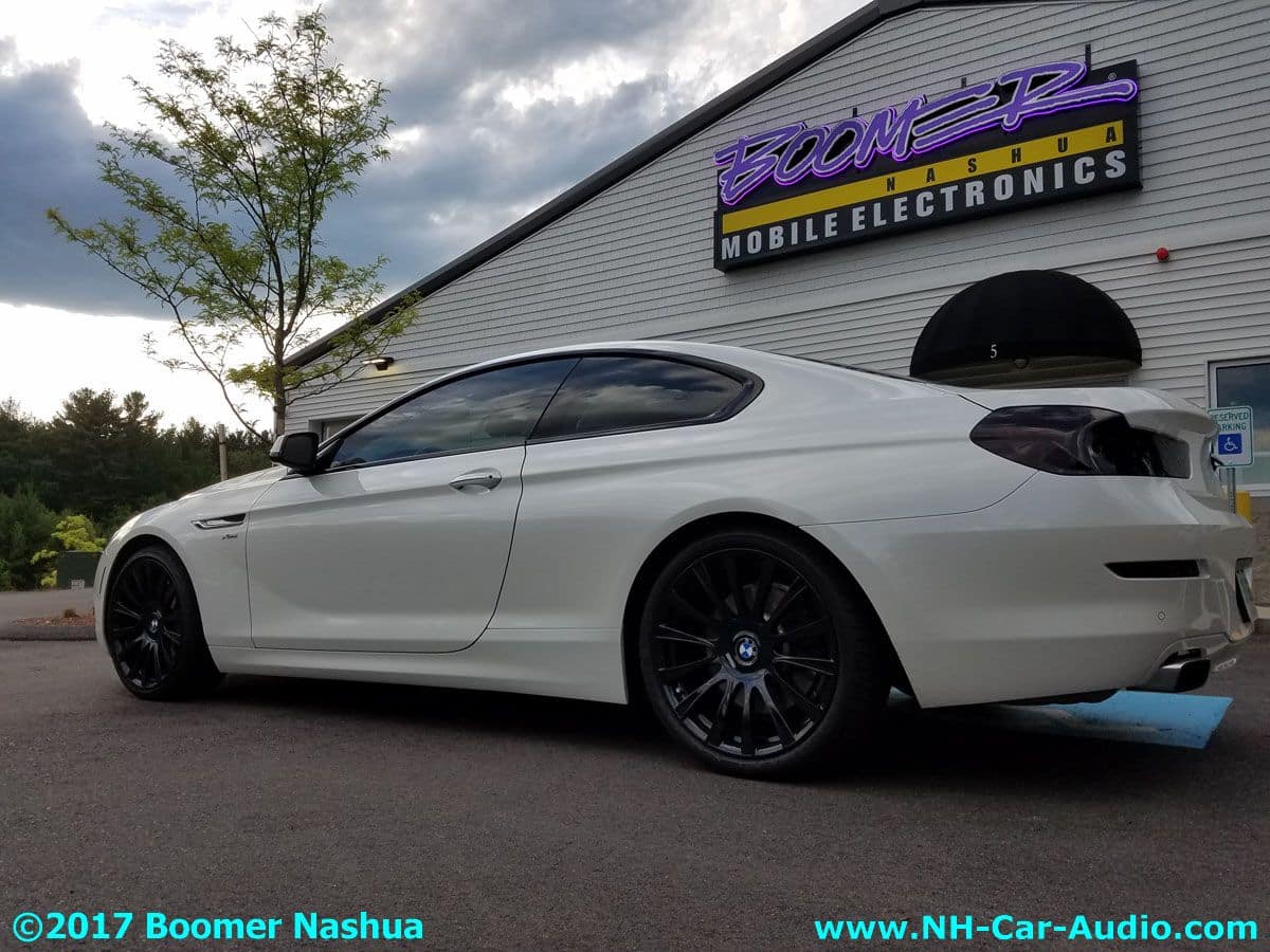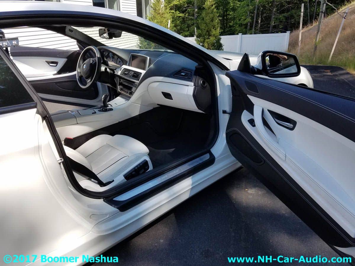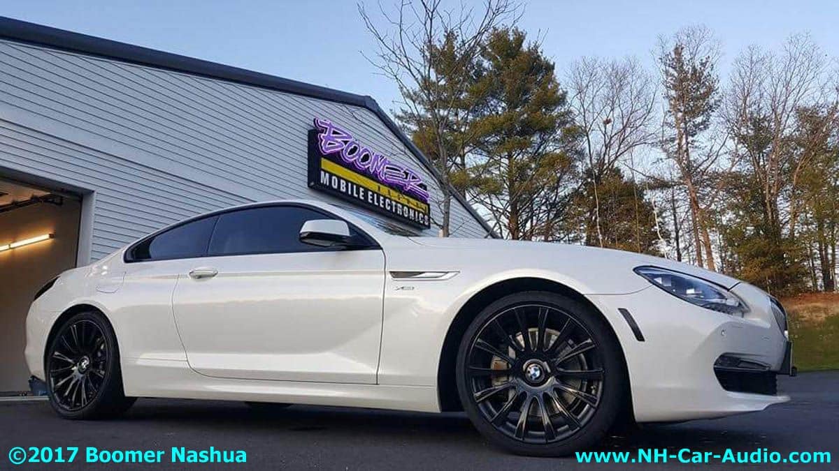 Going with that thought, truthfully he would have picked most of them, he told me himself, this is one really great UNIQUE car. Jamie being who he is, likes getting more toys for the toys, and couldn’t stop himself from making the best even better. One excellent philosophy they try to follow is to make added features look like they could have been original equipment. New stuff needs to retain the THEME already present in the car. This is always true, unless the customer just wants Boomer Nashua to do a total custom make-over for their vehicle (not the case here). Everything added to this BMW ‘individual’ 6 series car was done to extend the design theme already present, keep that in mind as you browse this picture gallery. Here are some of those additions: