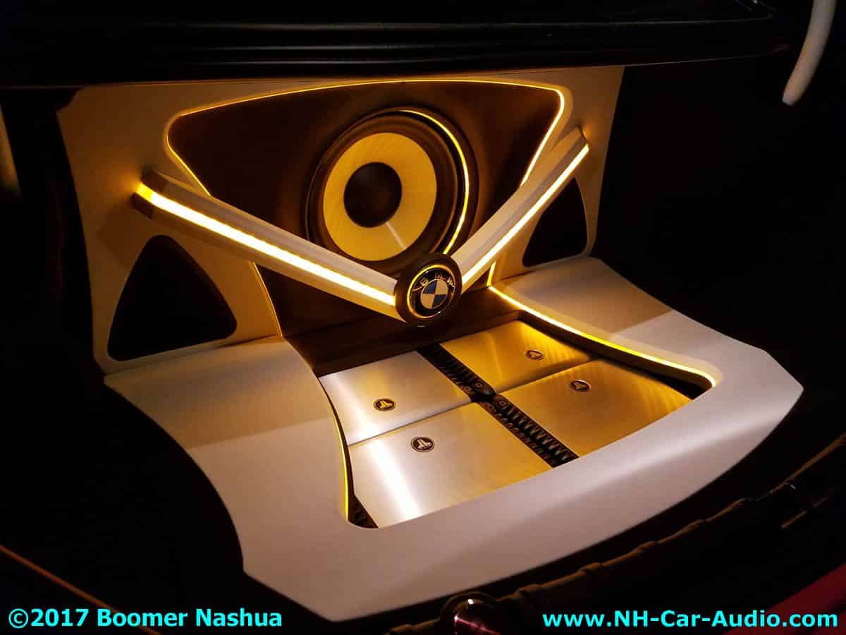 Here is a mix of photos showing different features, I specially like the extra touches done with the sub-woofer install that included a BMW logo and some fancy ornamentation as well. Enjoy the tour, remember you may believe you have the best, but Boomer Nashua can always make it even better.