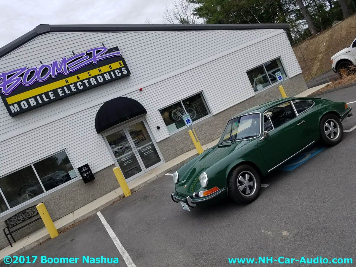 The best of both worlds, a classic 1971 Porsche 911 plus modern tech. You get the great look of the classic without having to give up Bluetooth, on screen navigation, or great sounding audio. Like having your cake and eating it too, taking that classic car and adding an OEM fit radio that ices the cake with Bluetooth and navigation features.  Leave it to Boomer Nashua to keep the classic look with the radio and speaker installations.  Who would have thought of getting internet based streaming music in a Classic 1971 Porsche 911? We can do more for you, stop in and see us and learn.