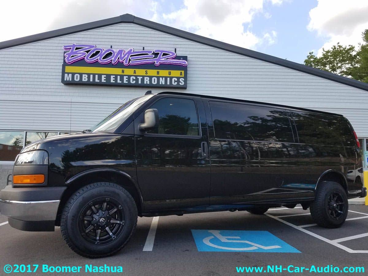 We kept the factory radio as it only needed a little extra help. This GMC Savannah Wheels audio upgrade did wonders to transform the Savannah van to another level. We installed all Kenwood amps and speakers and the sub-woofer with it’s amp is hidden under one of the seats. The new wheels completed the great new look, with improved audio and wheels it became a different vehicle. Here is a case where we used some of what was already installed, in this case the factory radio and improved on it.  On thing about wheels, there are so many different types and styles you have a chance to give your ride exactly the personality you would like it to have. The Boomer Nashua team is here to help you accomplish exactly that, get your ride the way you want it to be.