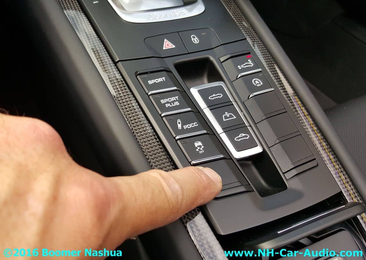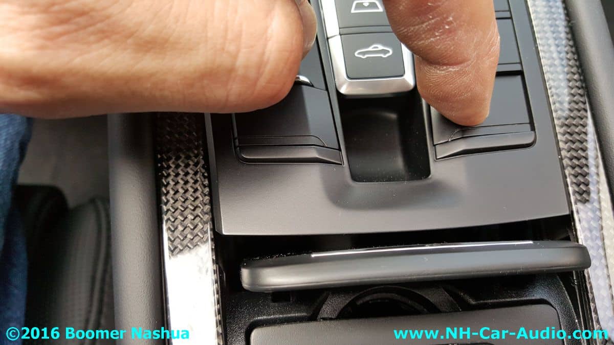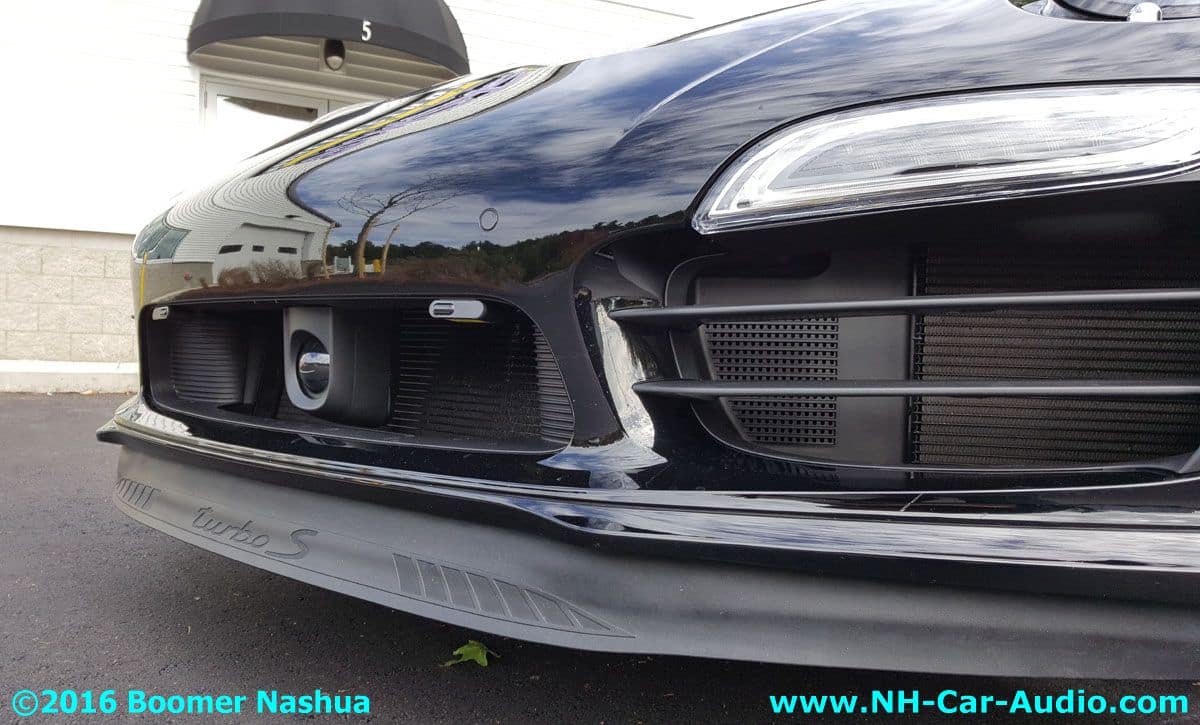 We were challenged to install a truly hidden Radar Detection & Laser Defense system into this Black Porsche 911 Turbo S Cabriolet. We used a Beltronics STiR Radar detection system and a AL Priority Laser Defense system. This pairing was a perfect choice. If you look at the consoles for different Porsche models you will see each has their own unique collection of buttons located on their console. For this design approach to work, they end up with extra space that is filled in with plastic blanks. For some of the detection system controls to be readily accessible as they should be, we built buttons under several of the blanks. By built I mean added switches, pressure springs and custom wiring into the controller. They look so good, if I hadn’t told you, you would have thought they were ‘factory switches’