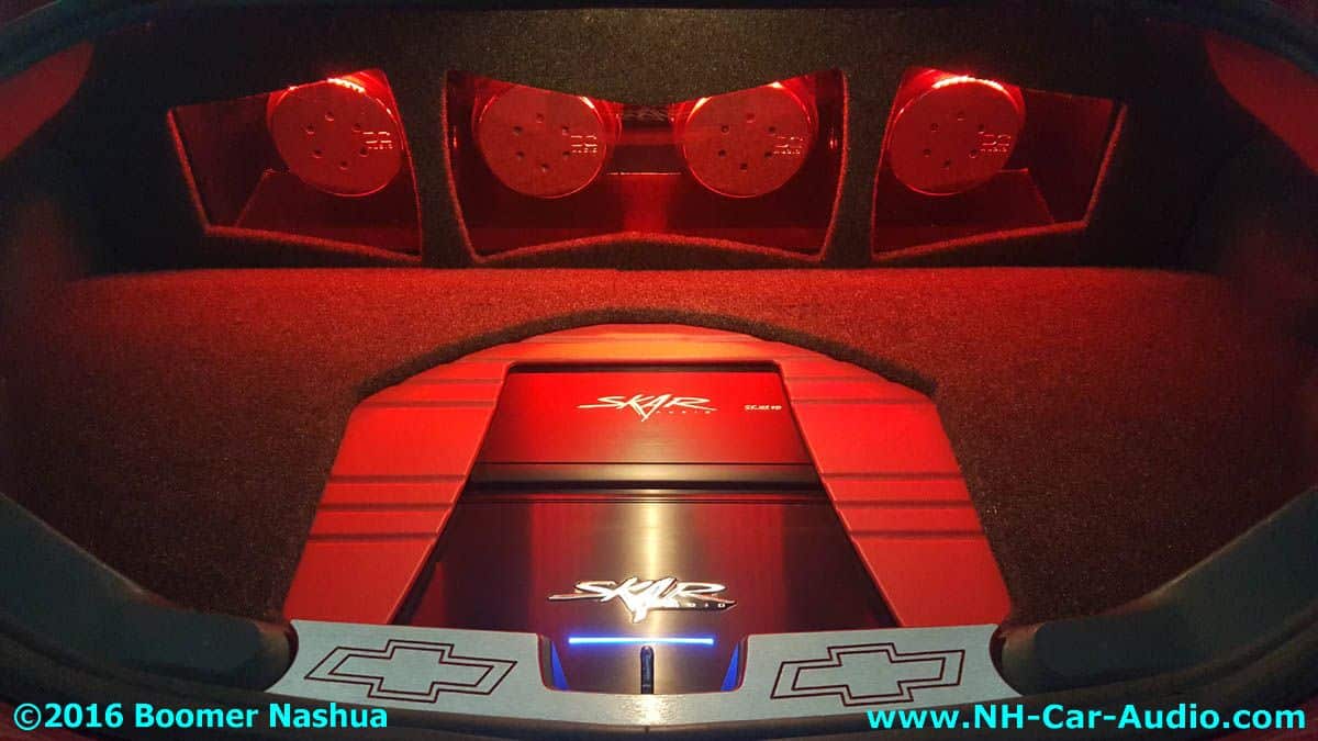 Our customer brought his Red Chevy Camaro Sub-woofer project to us, he provided the car and the speakers and we did the rest. This car now has an illuminated trunk Sub Enclosure color matched to the rest of the car.  It looks great, sounds great, and really provides a lot of punch with those four back seat drivers. Enjoy the views, while you are looking, imagine what we can do for your and your ride.gallery-spacer
