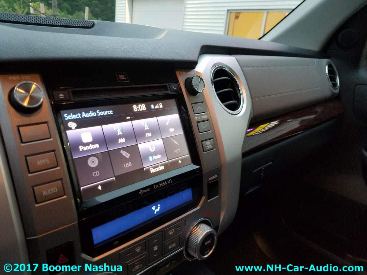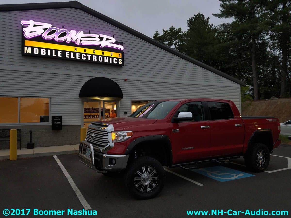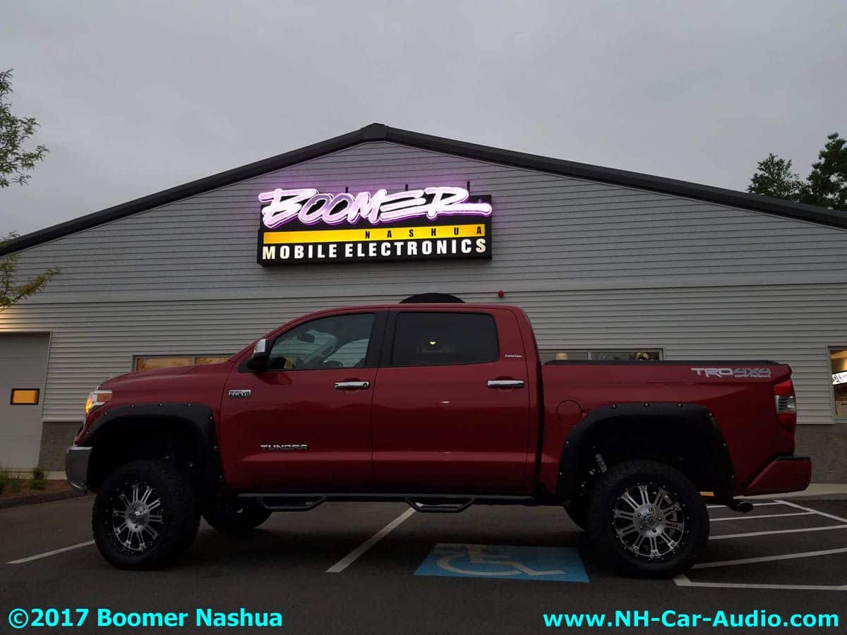 We kept the factory radio in this Red Toyota Tundra, by adding a JL Audio FiX processor we got world class sound from that radio to feed a high quality amplifier and speaker system. The final result is truly great sound. We added a JL Audio Amplifier and a JL Audio speaker upgrade, the result aggressive sound for the aggressive look of this red Toyota Tundra. Here at Boomer Nashua we try to find the BEST solution for the BEST sounding Audio for you. There are many ways we can improve your ride, more than you can imagine.  Stop in and let us help you discover them.