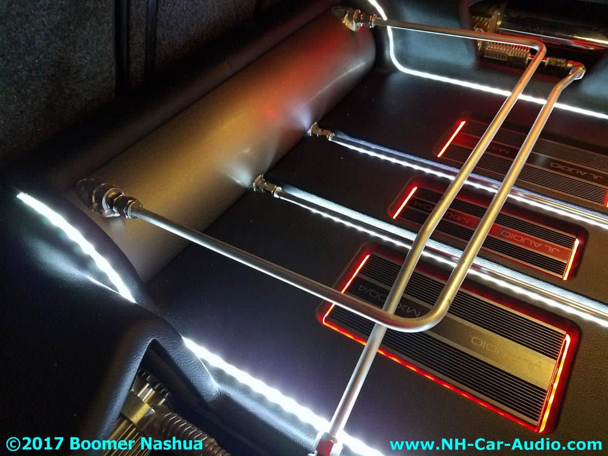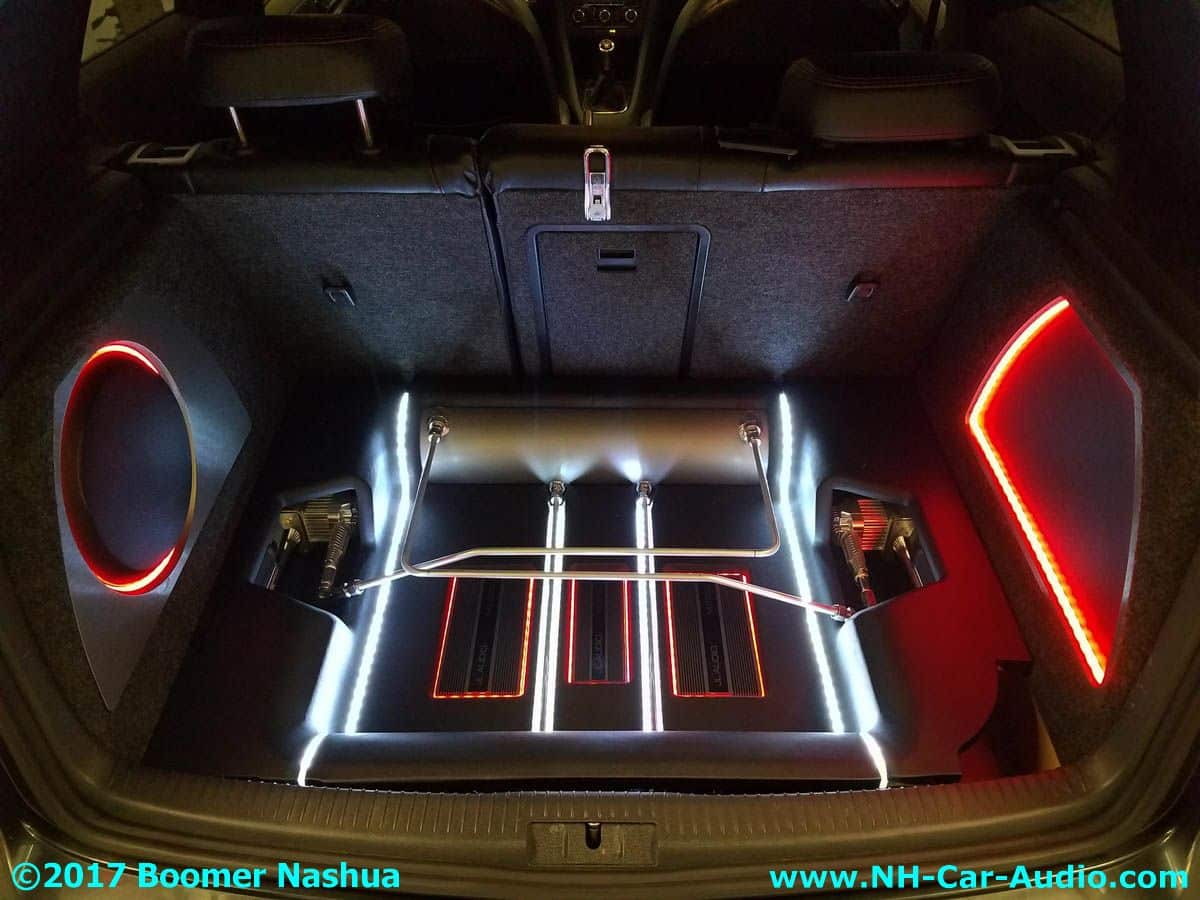Here is a totally custom Air Bag lift system as seen in Ryans VW GTI Air ride project. If you want to add an Air ride system to your car or truck, see how its done here at Boomer Nashua. We have the training and the tools to create one of the best systems around. Our award winning professional installers know how to apply their knowledge to each unique installation project. Want to hide stuff, we know how. If you would rather show it off, we do that too. Special fab work is needed to produce show worthy updates and not every shop can pull it off like Boomer Nashua. Sometimes it is hard to tell the difference between a tech install and ART. Don’t you agree?